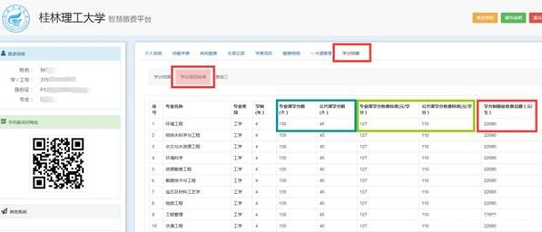 上图这里显示结算的学分数是教务部门提供的当年学分统计数,如果需要查看学分 下具体的选课情况需要登录教务系统。如果本人根据教务选课情况统计得出的学分总数与财务显示的学分数不同,可能有以下原因: